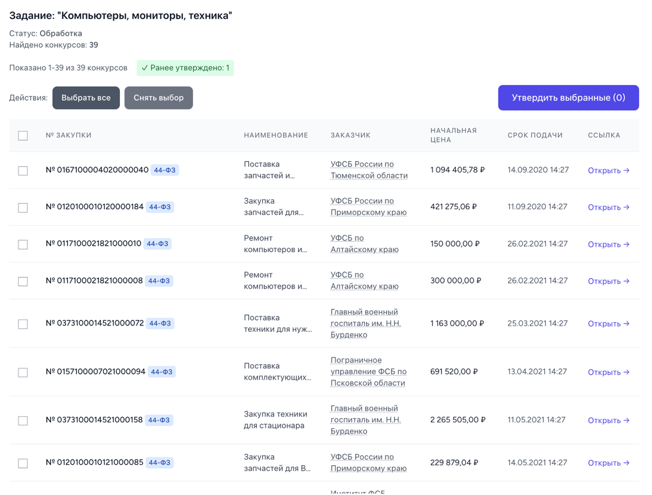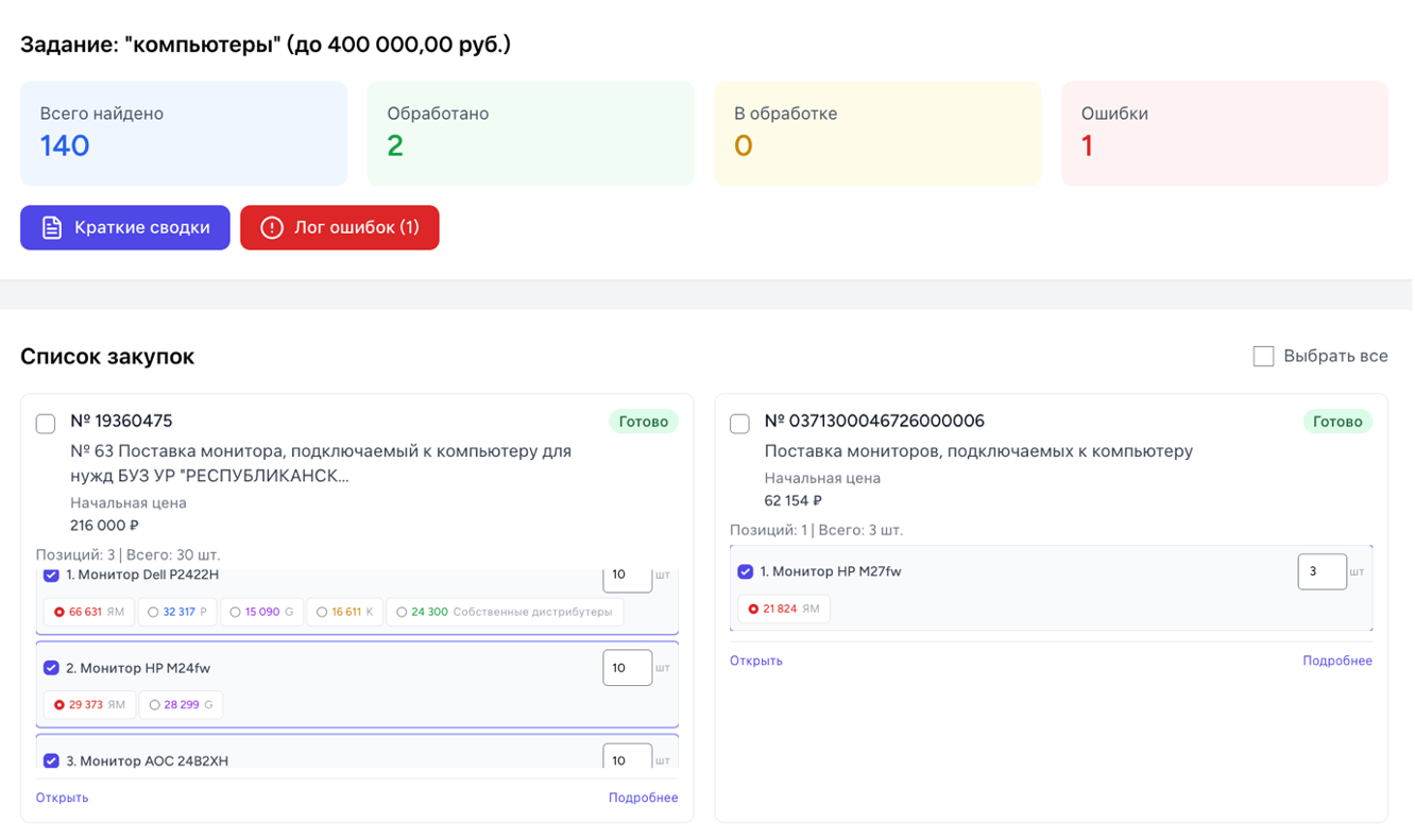 Массовый анализ сотен закупок в автоматическом режиме — оставьте систему работать на ночь.
