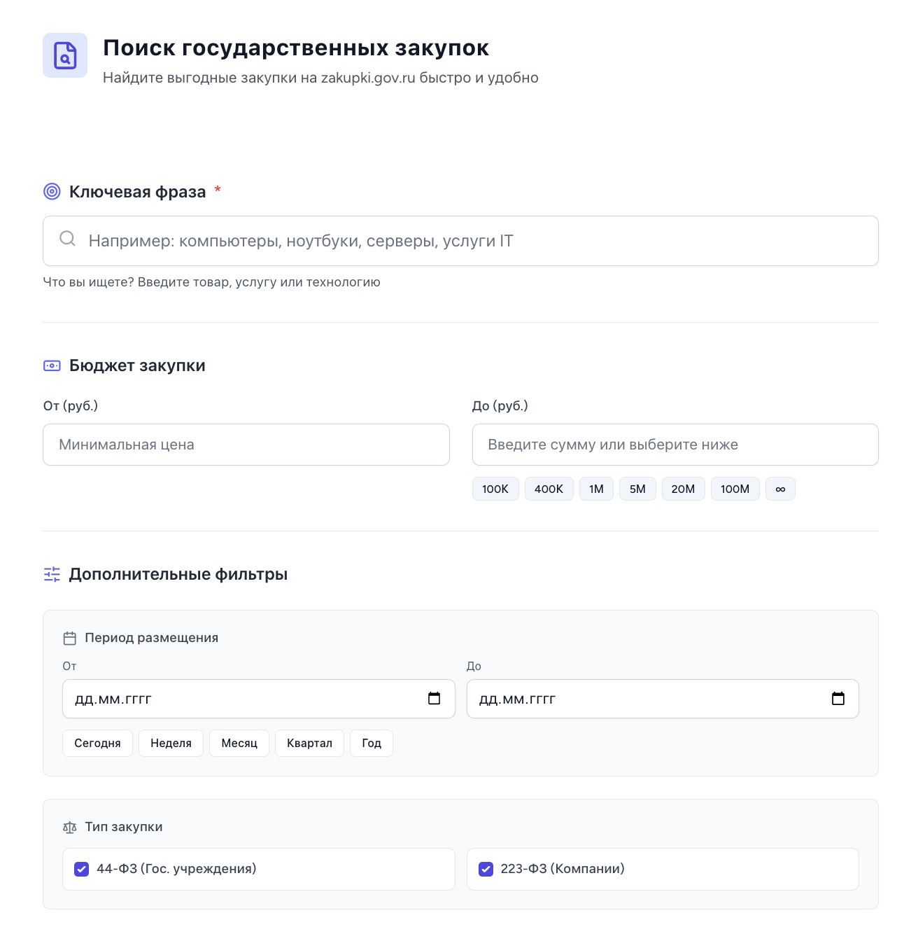 Полный набор инструментов для анализа тендеров, поиска цен и подготовки документов.
