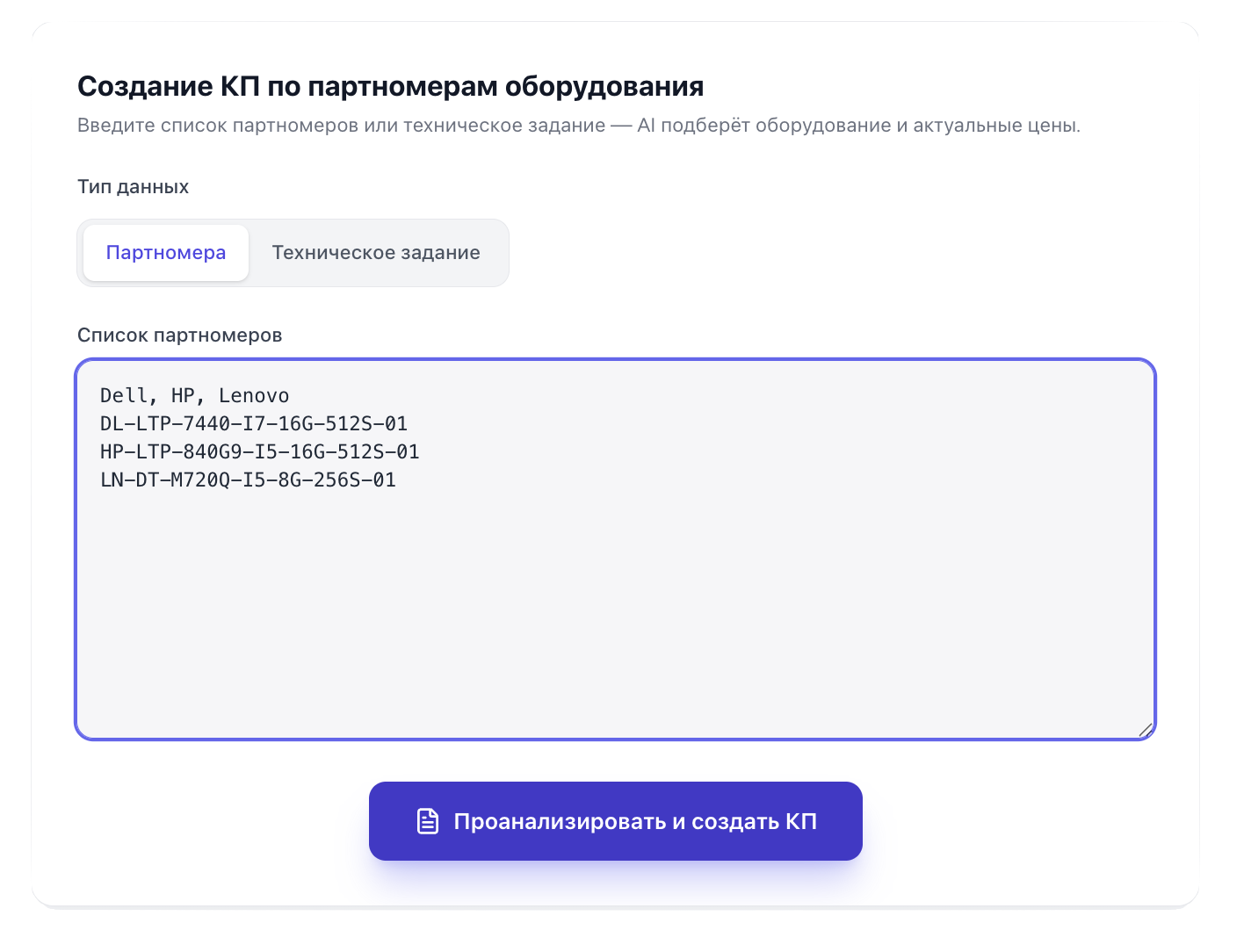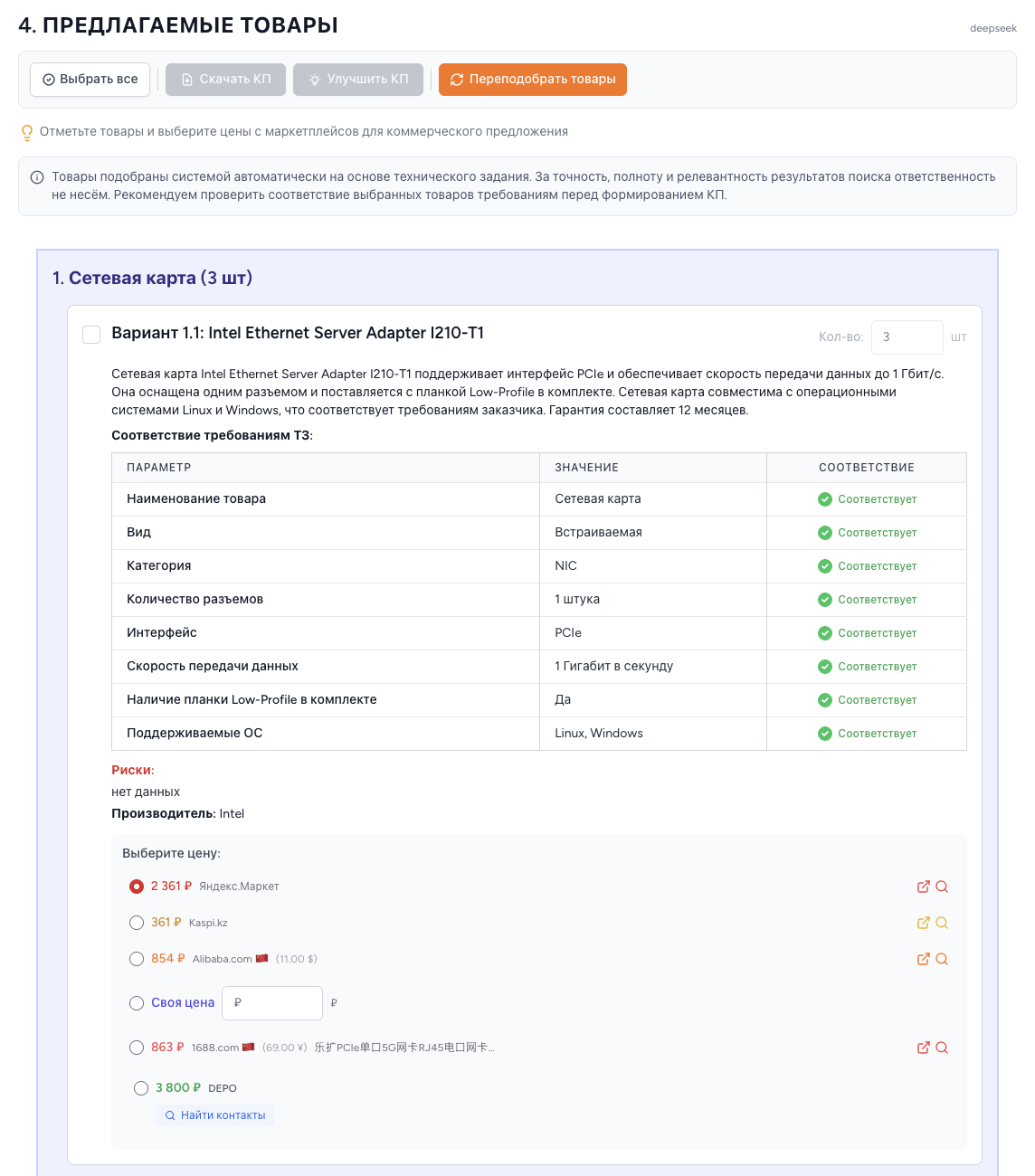 Анализируйте тендеры, формируйте коммерческие предложения и находите лучшие цены на маркетплейсах — всё в одной платформе.