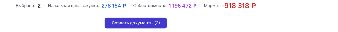 Автоматический расчёт маржинальности на основе себестоимости и начальной цены контракта.