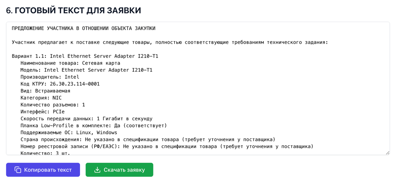КП и заявка на участие формируются автоматически. Не только анализ — сразу рабочий результат.