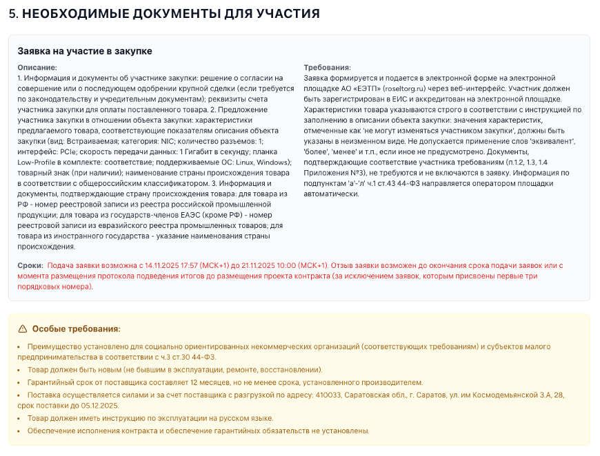 Готовое КП, заявка на участие и характеристики товаров — скачайте в один клик.